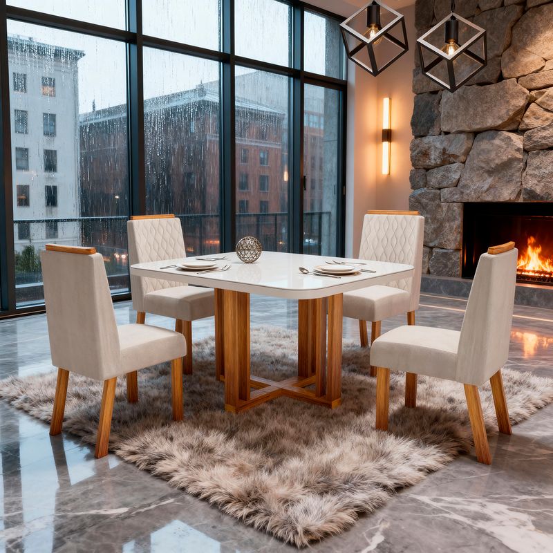 Sala de Jantar 120x80 Paola Tampo OFF-White 4 Cadeiras Bom Pastor