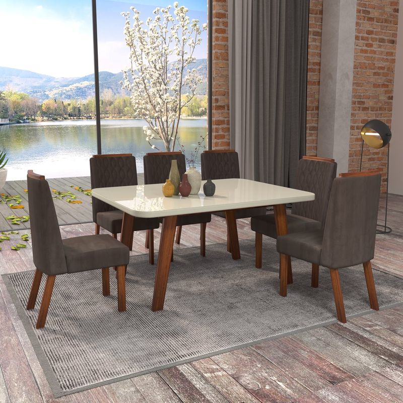 Sala de Jantar 160x80 Alba Tampo MDF/Vidro Bom Pastor 6 Cadeiras
